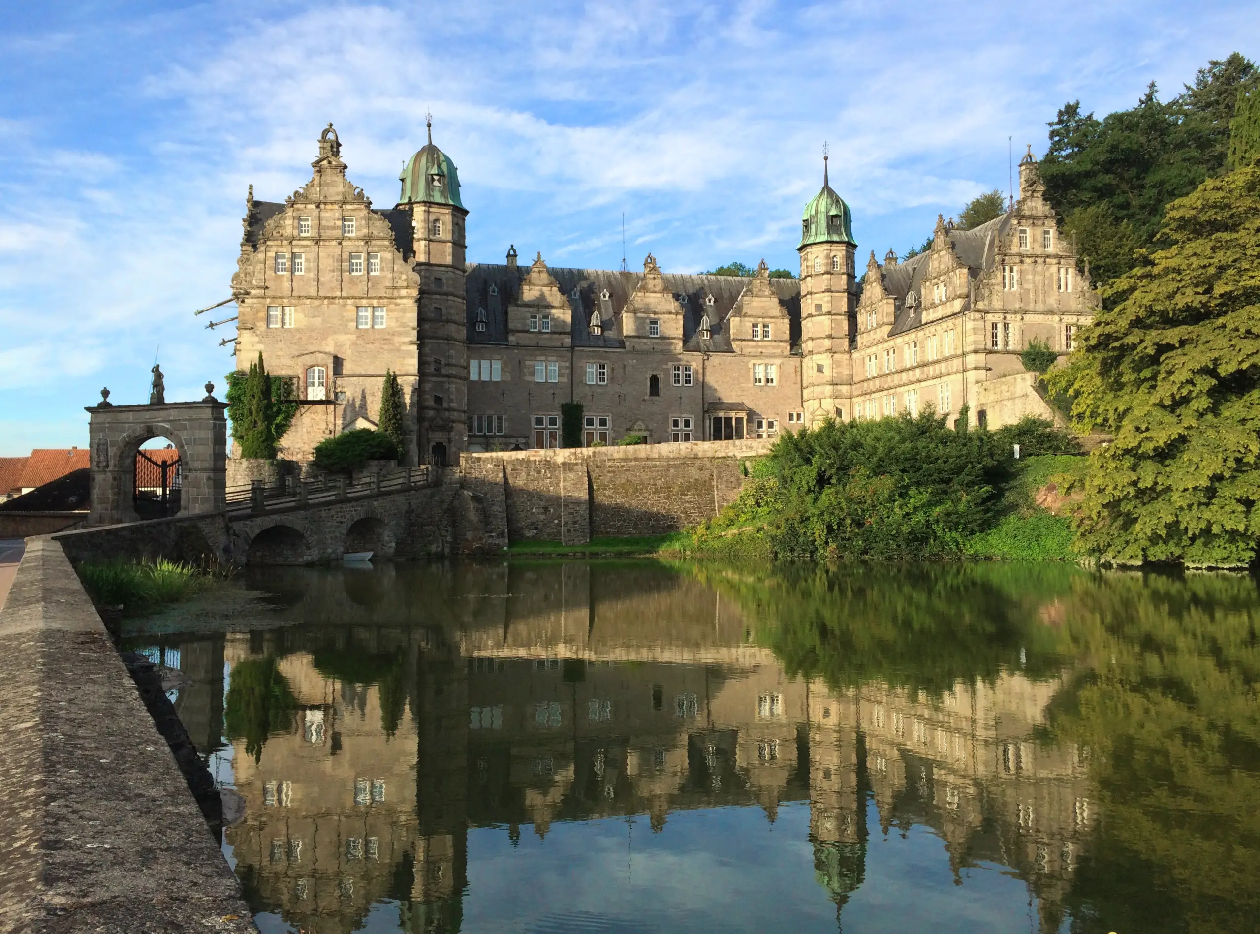 Das Schloss Hämelschenburg ist ein Kleinod norddeutscher Baukunst und mit Kirche, Wirtschaftsgebäuden, Park und Inventar vollständig erhalten.
